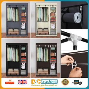Fabric Canvas Wardrobe With Clothes Hanging Rail Shelves Storage Cupboard