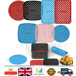 Reusable Air Fryer Liners Non-Stick Silicone Pad Mat Basket Square Round UK New