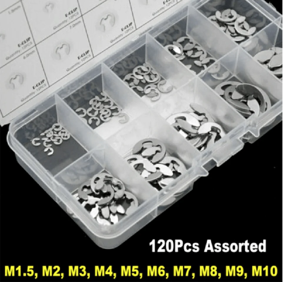 - 120 pcs x Stainless Steel E-Clip (each size 12 pcs)