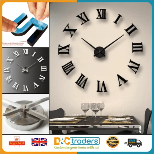 Be the first to review “3D Extra Large Roman Numerals Luxury Mirror Wall Sticker Clock DIY Home Decor UK”