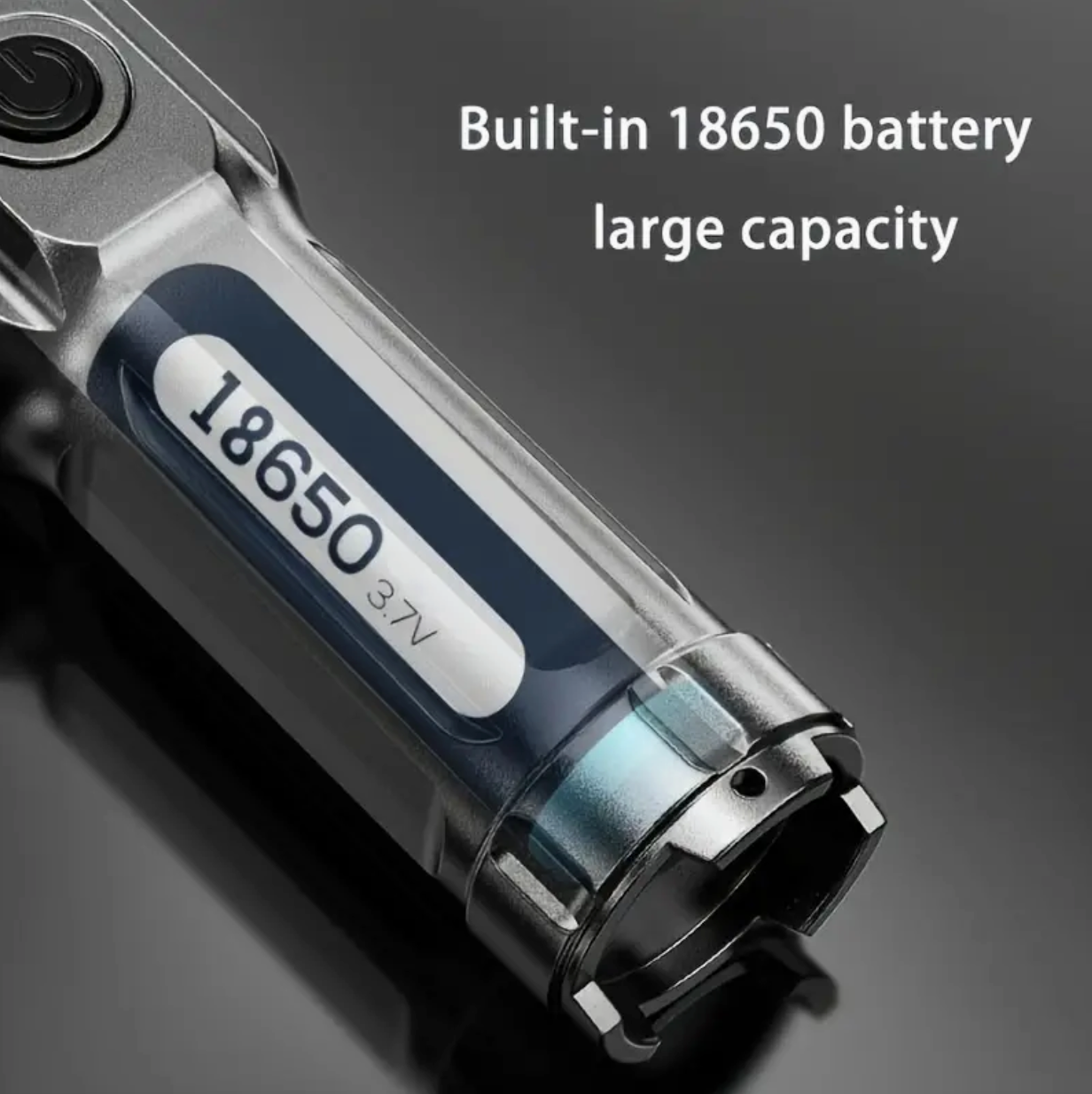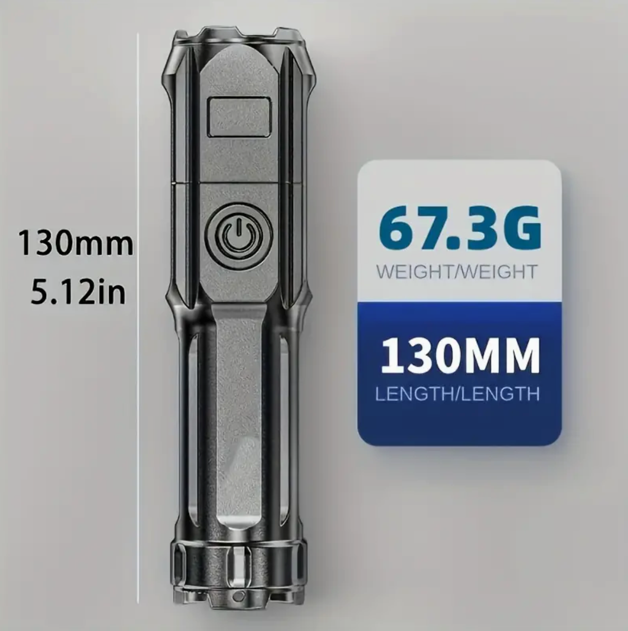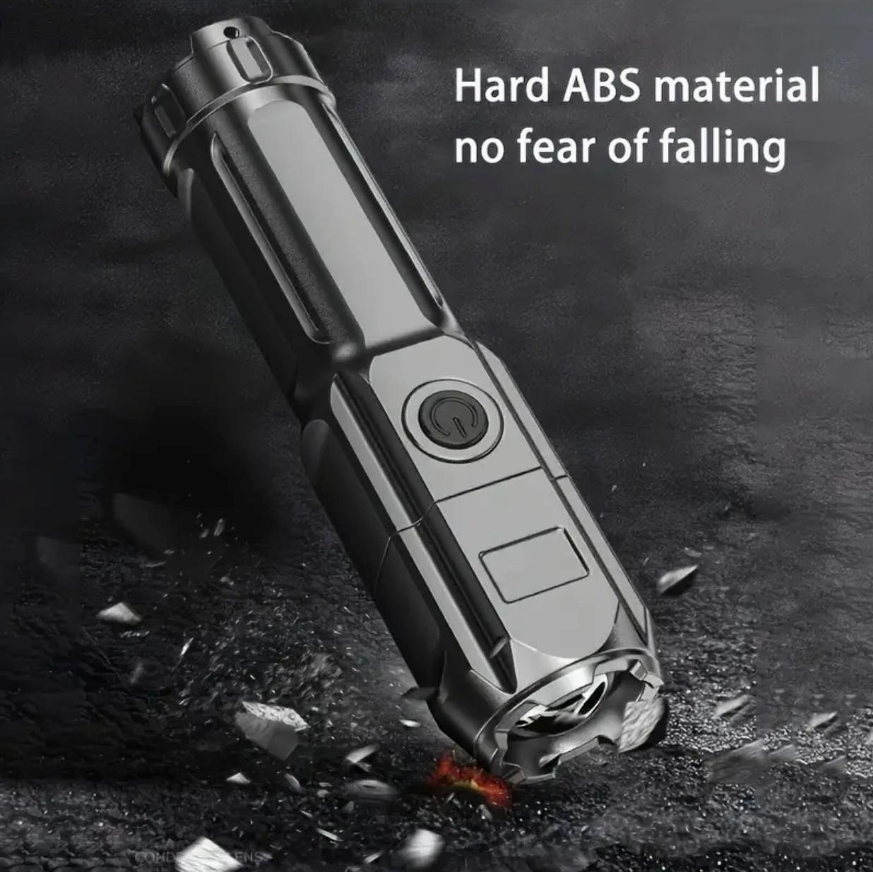 Crafted from robust ABS material, this flashlight is designed to withstand rugged conditions, including rainy camping trips, thanks to its waterproof construction. With rechargeable capabilities, it offers added convenience for your next excursion.
