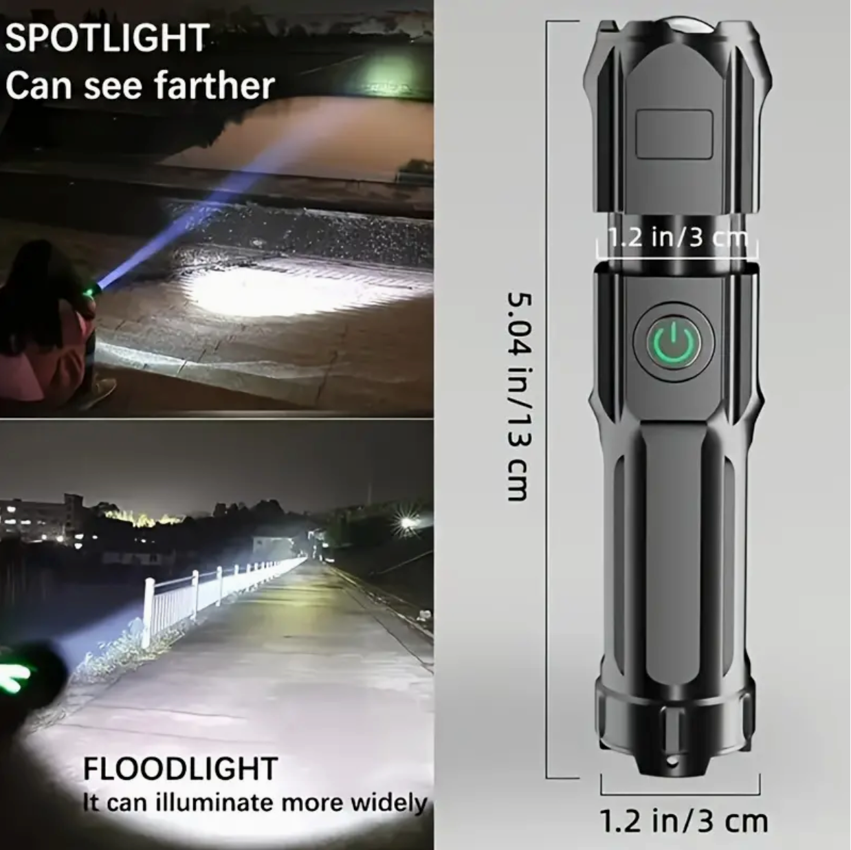 Illuminate your outdoor experiences with confidence using the LED Rechargeable Handheld Flashlight, a dependable tool designed to meet the demands of adventurers and emergency responders alike.