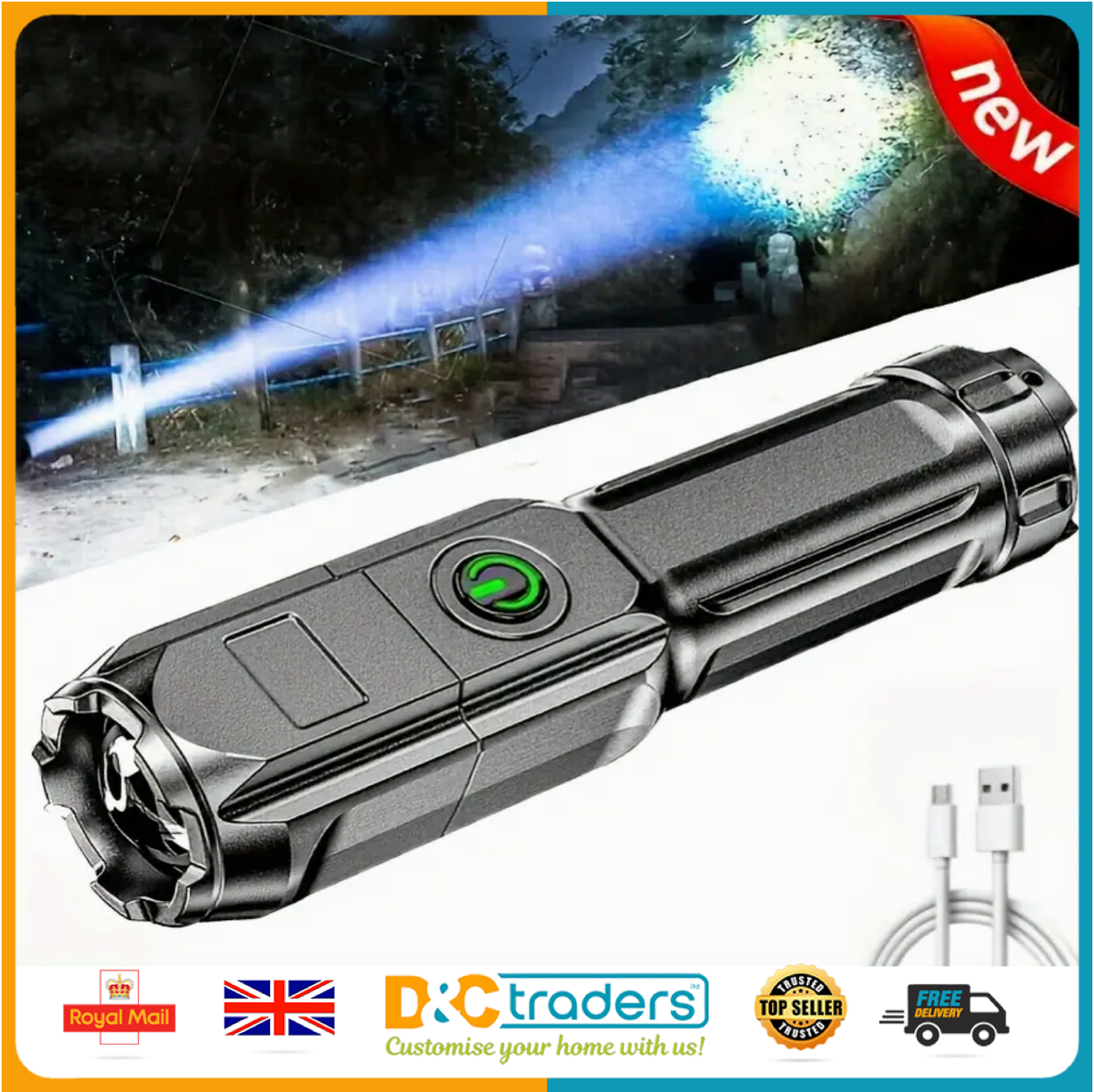 Item DescriptionPresenting the LED Rechargeable Handheld Flashlight, a versatile companion tailored for outdoor adventures and emergency situations. Engineered with cutting-edge lighting technology featuring durable LED bulbs, this flashlight ensures powerful illumination that lasts.